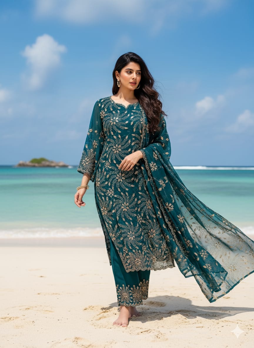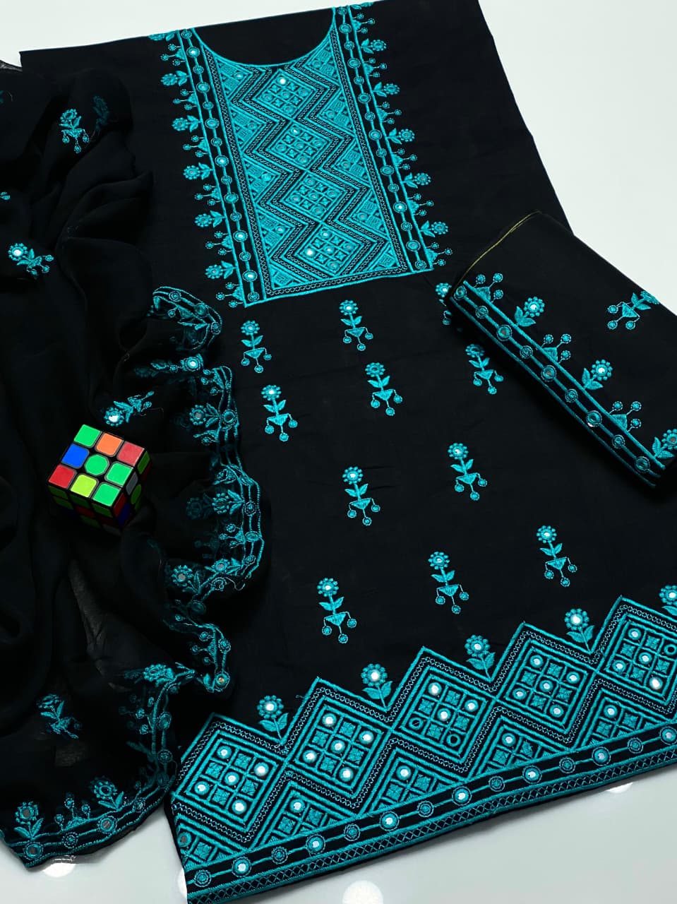 Premium Lawn Cotton Mirror Work 3PC Suit – Festive Collection